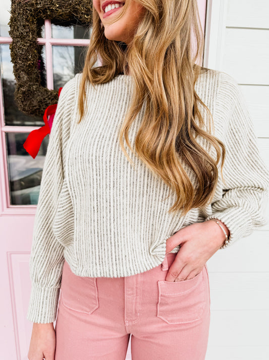 Arden Stripe Dolman Sleeve Knit Top - Grey Ivory