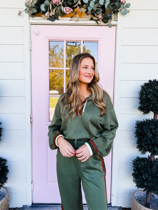 First Place Stripe Trimmed Elastic Waist Pant - Olive