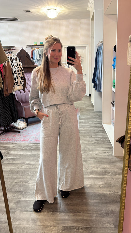 Fall Favorite Rib Wide Leg Sweatpants - H. Grey