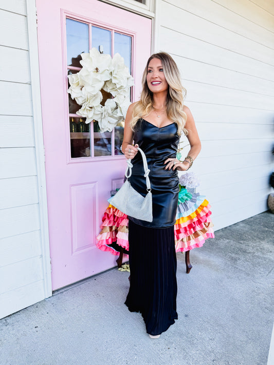 Fete Vegan Leather Pleated Skirt Maxi Dress - Black