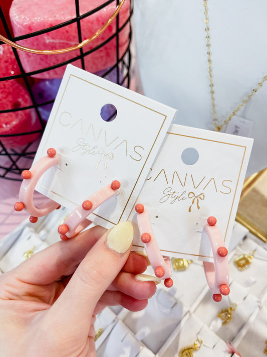 Olivia Studded Resin Hoop Earrings - Light Pink/Pink