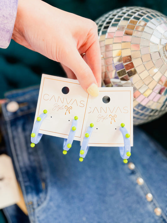 Olivia Studded Resin Hoop Earrings - Light Blue/Lime Green
