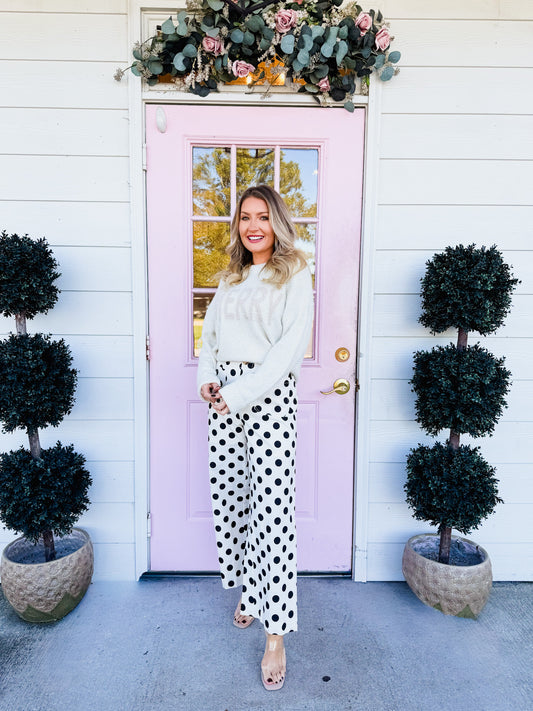 Onto Something Polka Dot Front Pocket Wide Leg Pants - Black/White