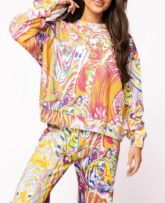 Queen Of Sparkles Rainbow Multi Abstract Tiger Sweatshirt