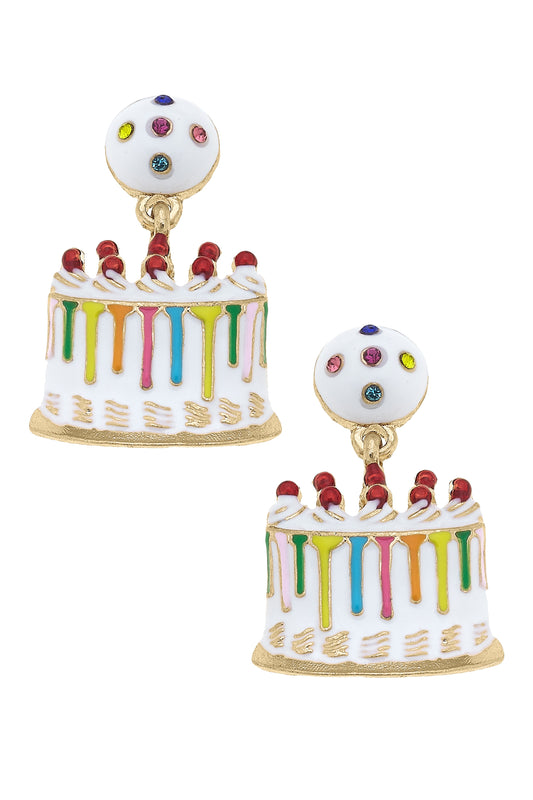 Rhinestone Enamel Birthday Cake Earring - Rainbow Multi