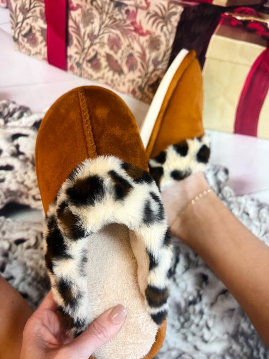 Chestnuts Roasting Leopard Print Slippers