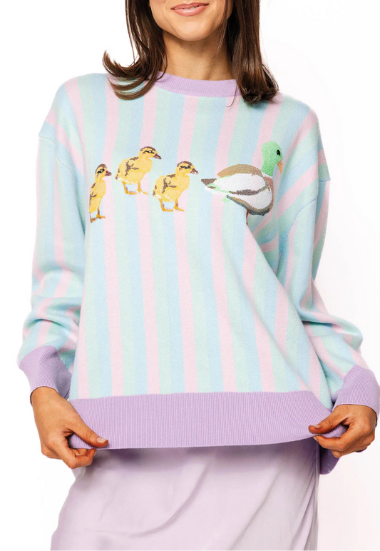 Queen of Sparkles Pastel Striped Duck & Chicks Sweater