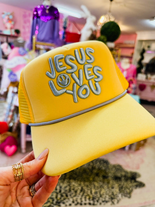 Yellow Jesus Loves You Smiley Hat