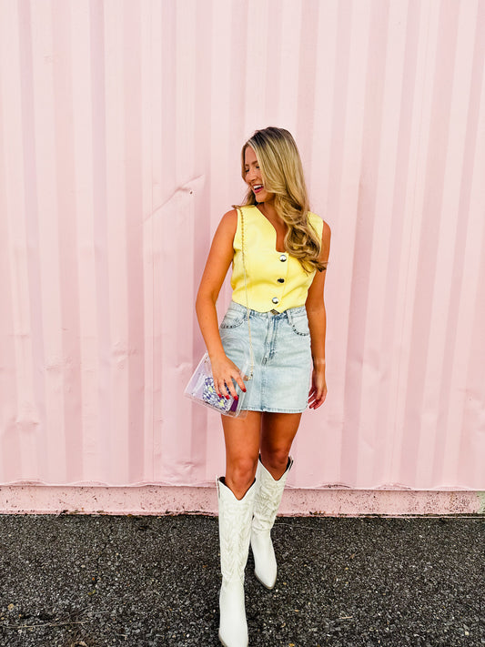 Big Fan Crepe Wavy Cutout Vest - LemonRegular price $24.00 USDRegular priceUnit price / per$48.00 USDSale price $24.00 USDSold out