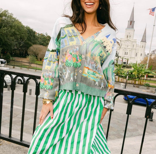 Queen Of Sparkles Mardi Gras Parade Scene Button Up Cardigan
