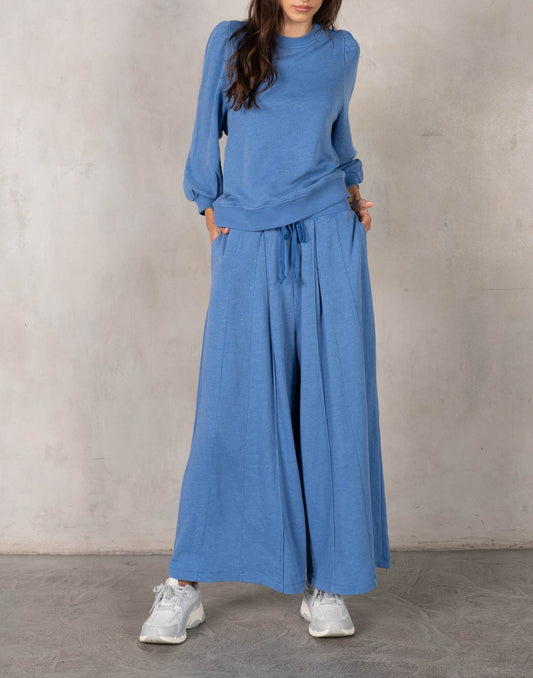No Brainer Wide Leg Pleated Sweatpants - Denim