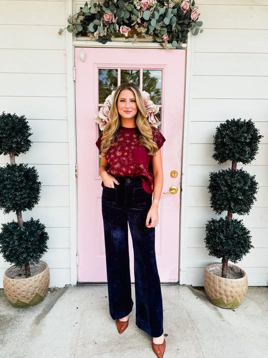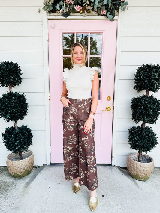 Z Supply Hunter Knit Denim Pant - Chocolate Cherry
