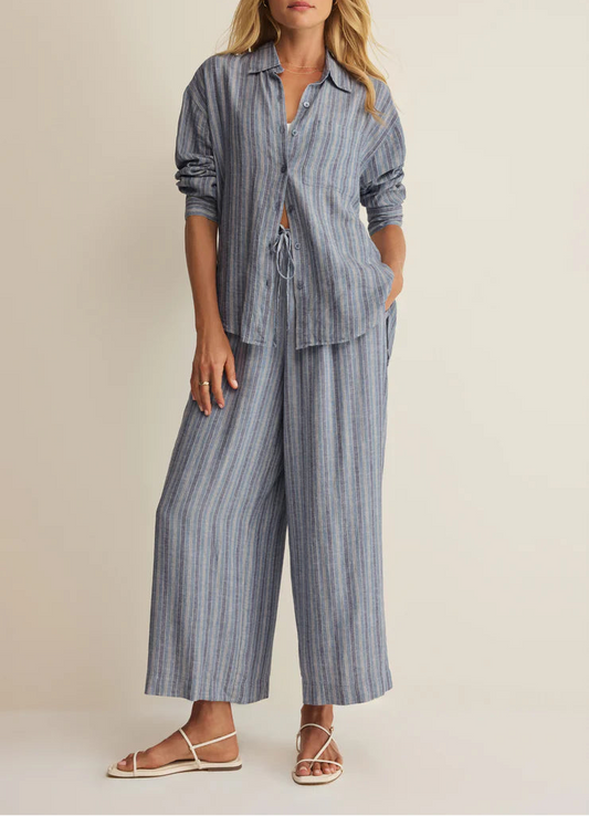 Looking Ahead Striped Elastic Waist Eyelet Pant - Blue