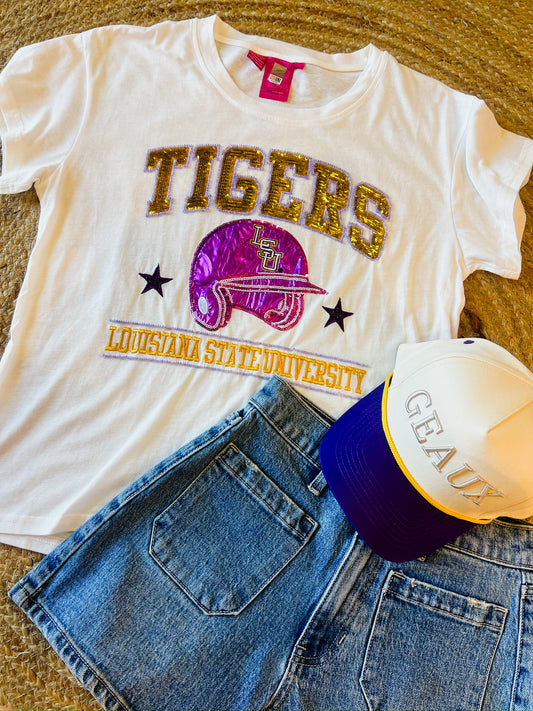 Queen Of Sparkles Licensed LSU Tigers Baseball Helmet Tee