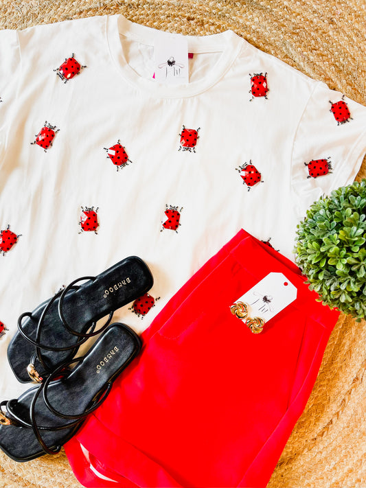 Queen Of Sparkles White Ladybug Tee