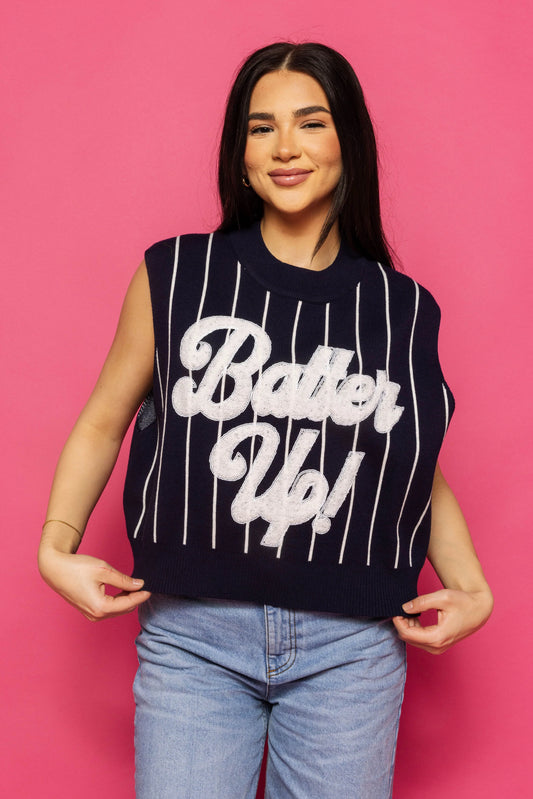 Queen of Sparkles Navy & White Stripe Batter Up Sweater Vest