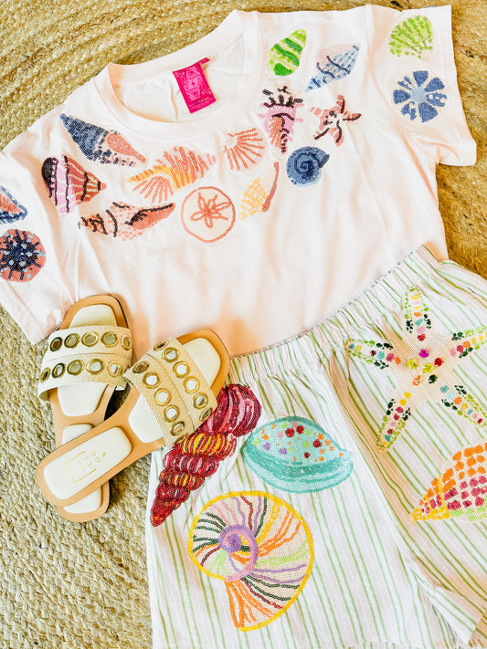 Queen Of Sparkles Light Pink Multi Shell Tee