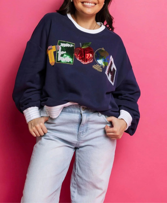 Queen of Sparkles Navy 'Teach' Sweatshirt
