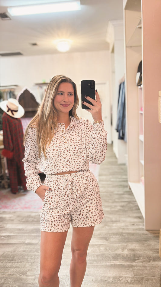 Sold outFloral 2-Piece PJ Short Set - Cream