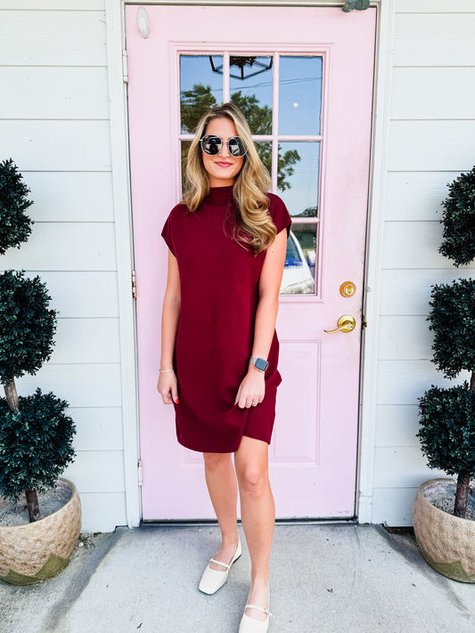 Cozy & Chic Mock Neck Sweater Dress - Burgundy