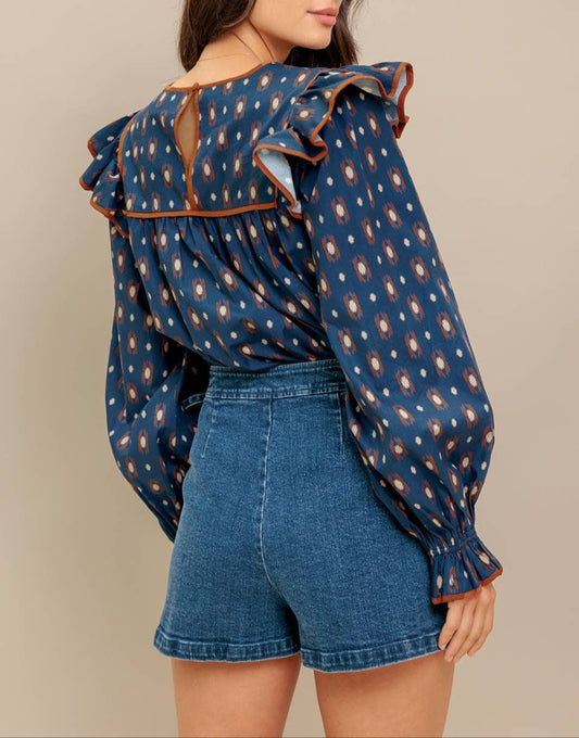 Unwritten Beauty Floral Ruffle Collar Top - Ecru