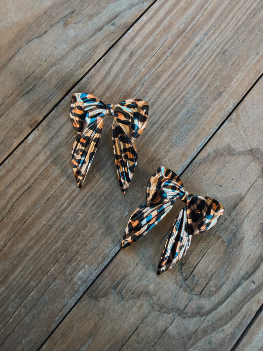 Gold Bow and Multi Charm Pendant Scarf Necklace - Leopard