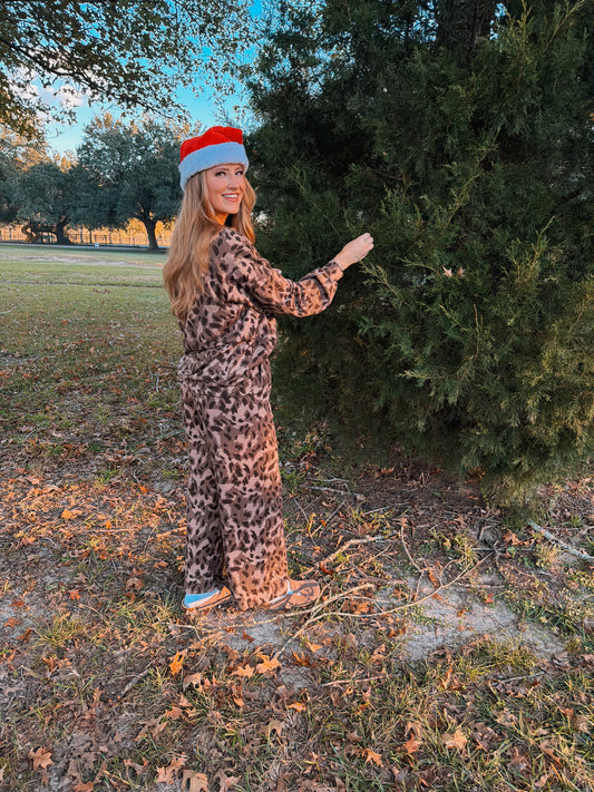 Animal Print Pant and Long Sleeve Top Set - Brown Multi