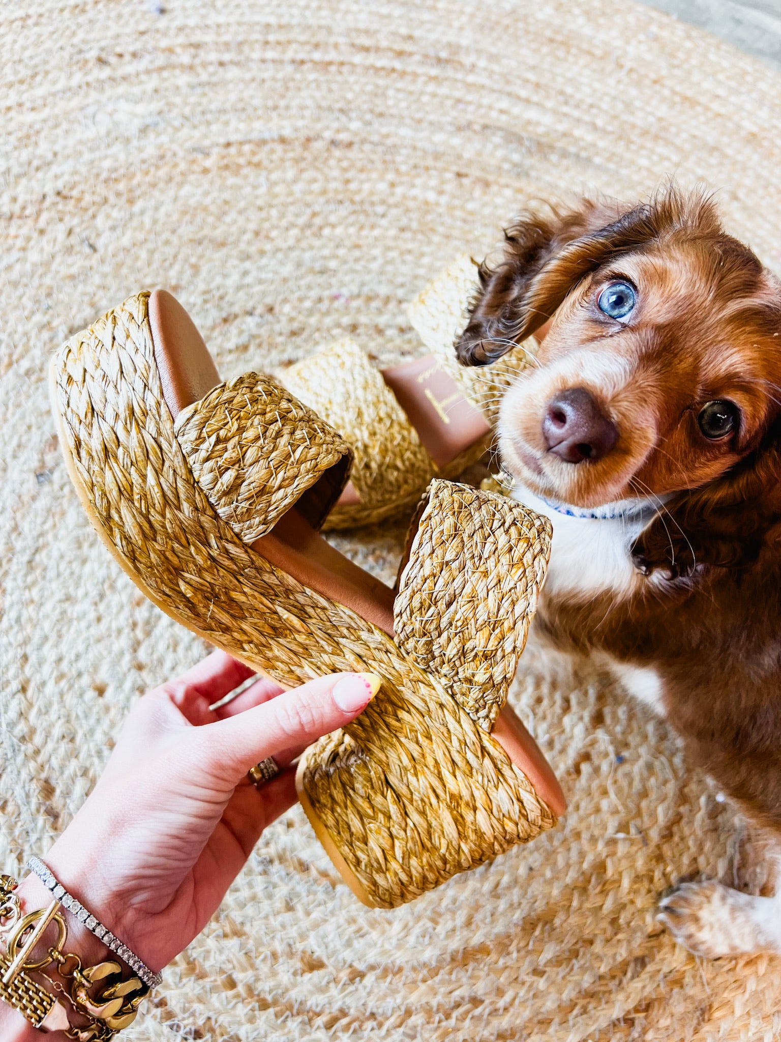 Please note: due to the nature of the raffia used on this style, each pair will look similar but not identical to the one pictured. These are considered natural variances and part of the intended look.