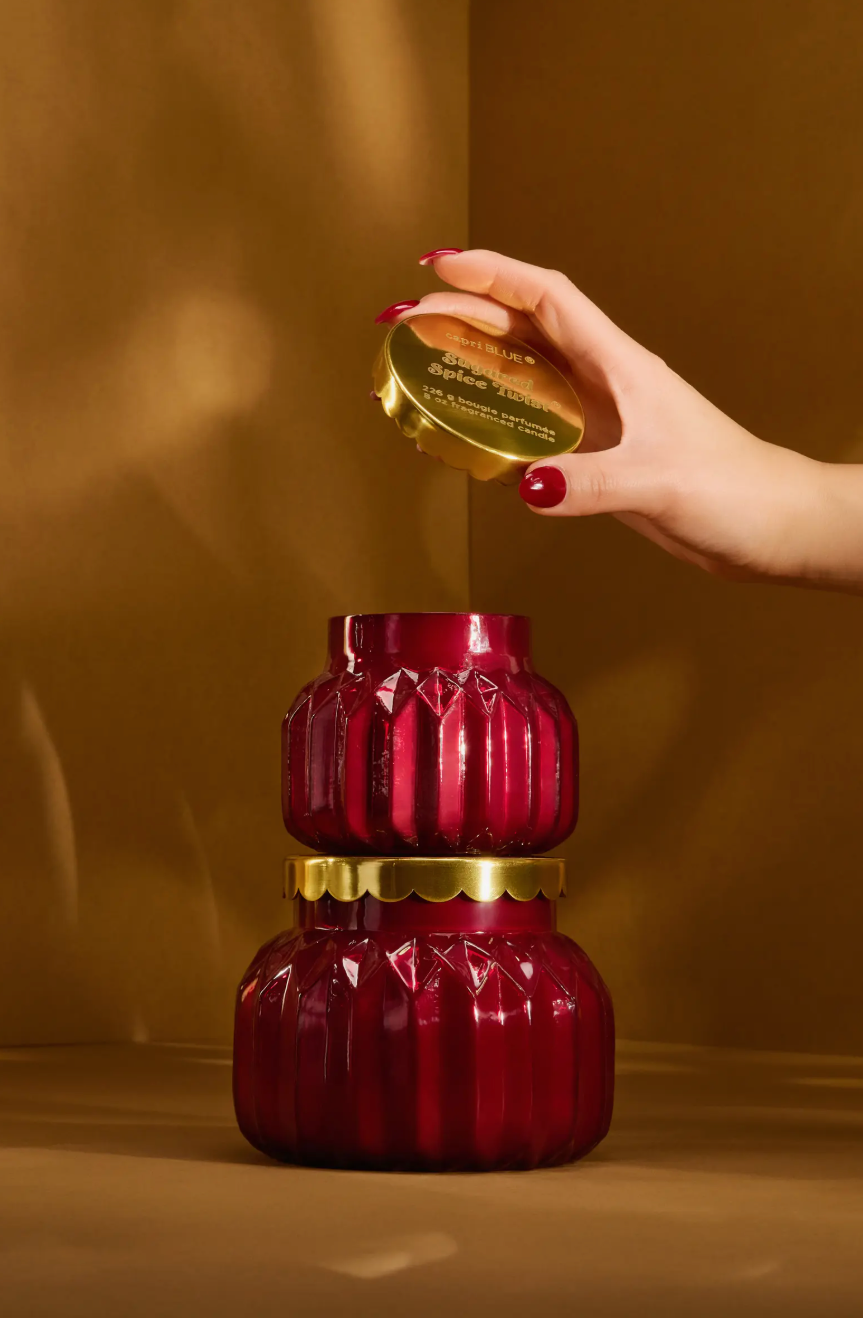 Ignite your senses with a scent as captivating as a rare jewel. The Sugared Spice Twist Royal Gem Signature Candle in Ruby Red is a true treasure—housed in a gem-inspired faceted jar to evoke a jewel-like allure, with a radiant glow and a polished gold lid that exudes elegance. This candle delivers a fresh twist on holiday spice, blending vibrant tropical fruits and sugared citrus with a twist of black currant, warm cinnamon, and brown sugar.
