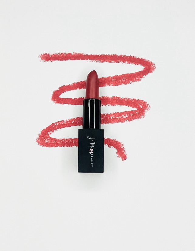 JM Beauty's Creamy Lipstick is such a comfortable texture that it delivers a color-rich finish while leaving your lips feeling satin sheen and never dry. Featuring a non-sticky and lightweight formula, it effortlessly glides on without settling into lip lines, offering hours of smooth coverage. Hydrating and moisturizing, leaving lips instantly soft. This lipstick is not only creamy, but lightweight while offering full coverage with bold pigment. Available in 7 lip shades from the perfect nude to an iconic red, "She's Spicy".