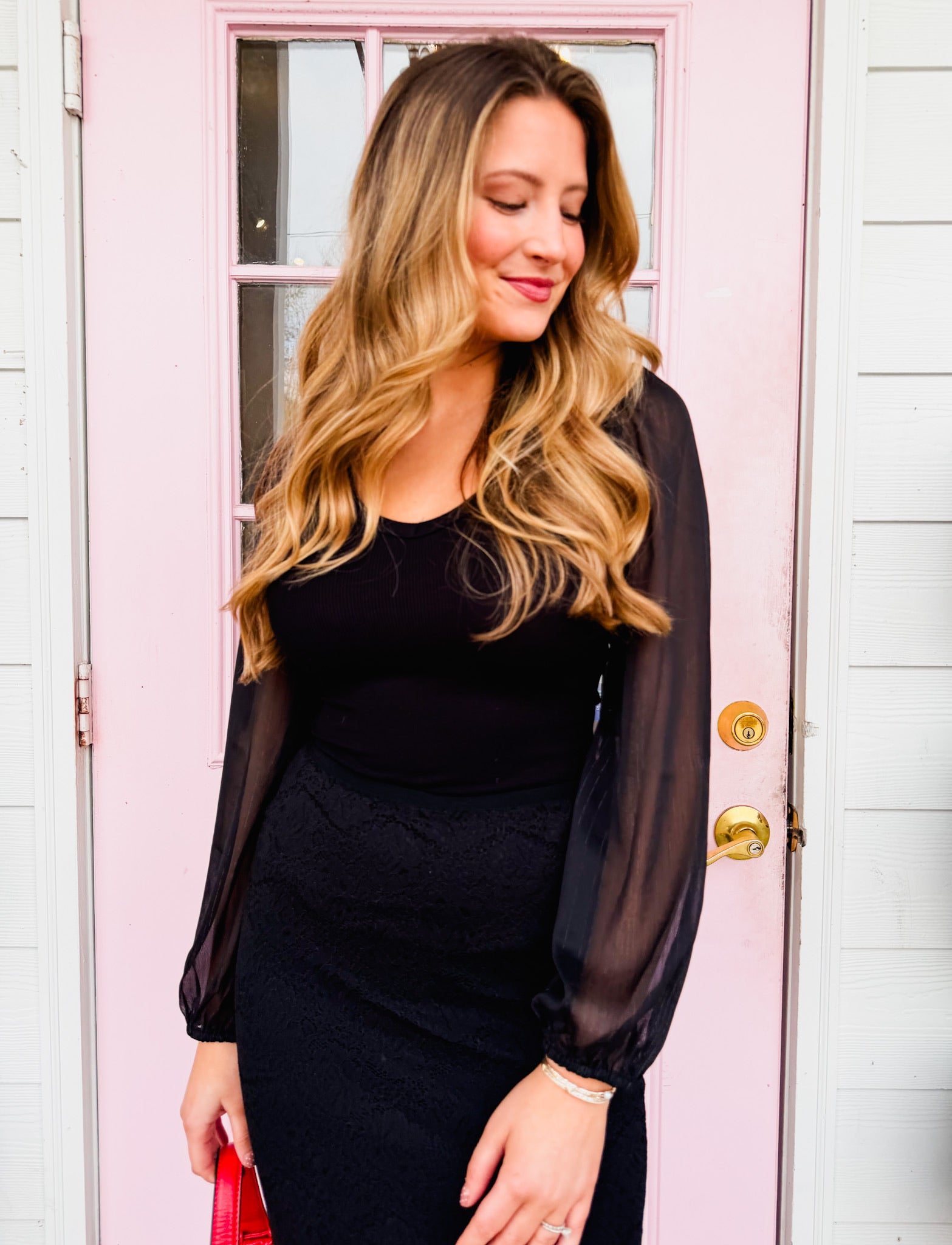 Slip into pure confidence with the Gleam Mixed Media Bodysuit in Black. This versatile piece blends contrasting textures for an effortlessly chic look that transitions from day to night. The mixed media construction adds visual interest while the sleek black hue keeps things timeless and sophisticated. Perfect for layering under sheer tops or wearing solo as a statement piece, this bodysuit is your new go-to for creating endless outfit combinations. Comfortable, flattering, and undeniably fabulous.