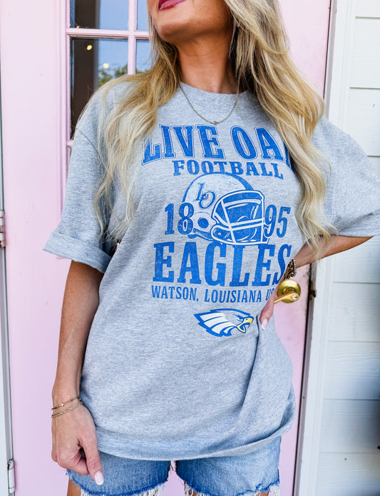 Live Oak Football Drop Shoulder Graphic Tee - Light Heather Grey