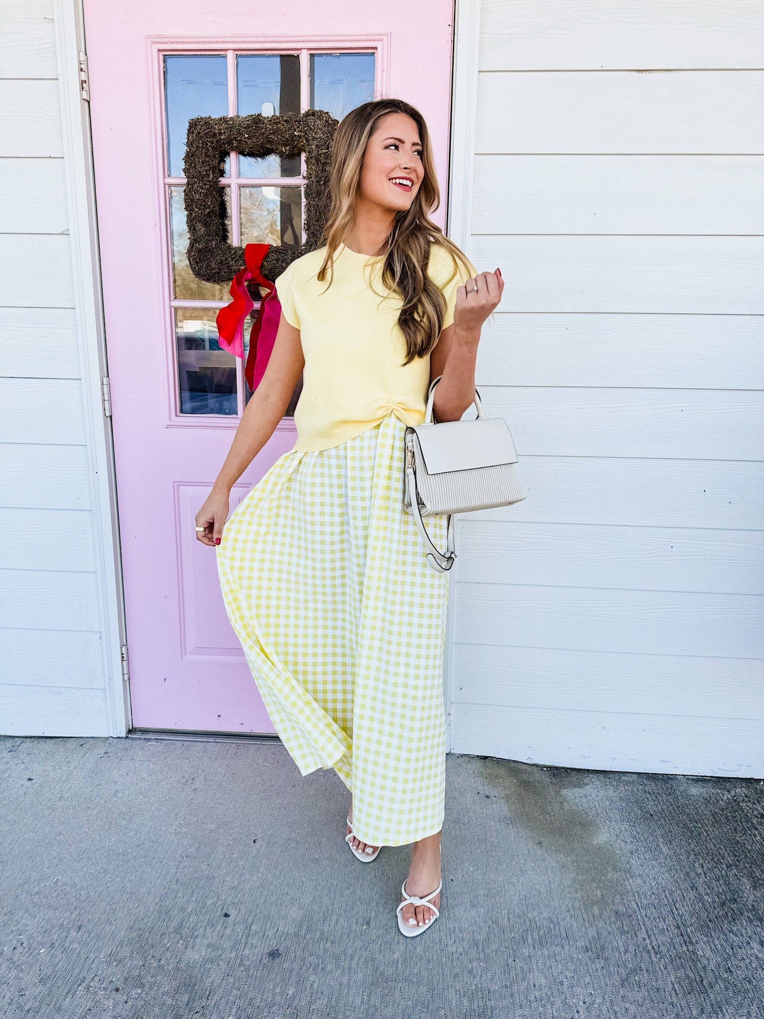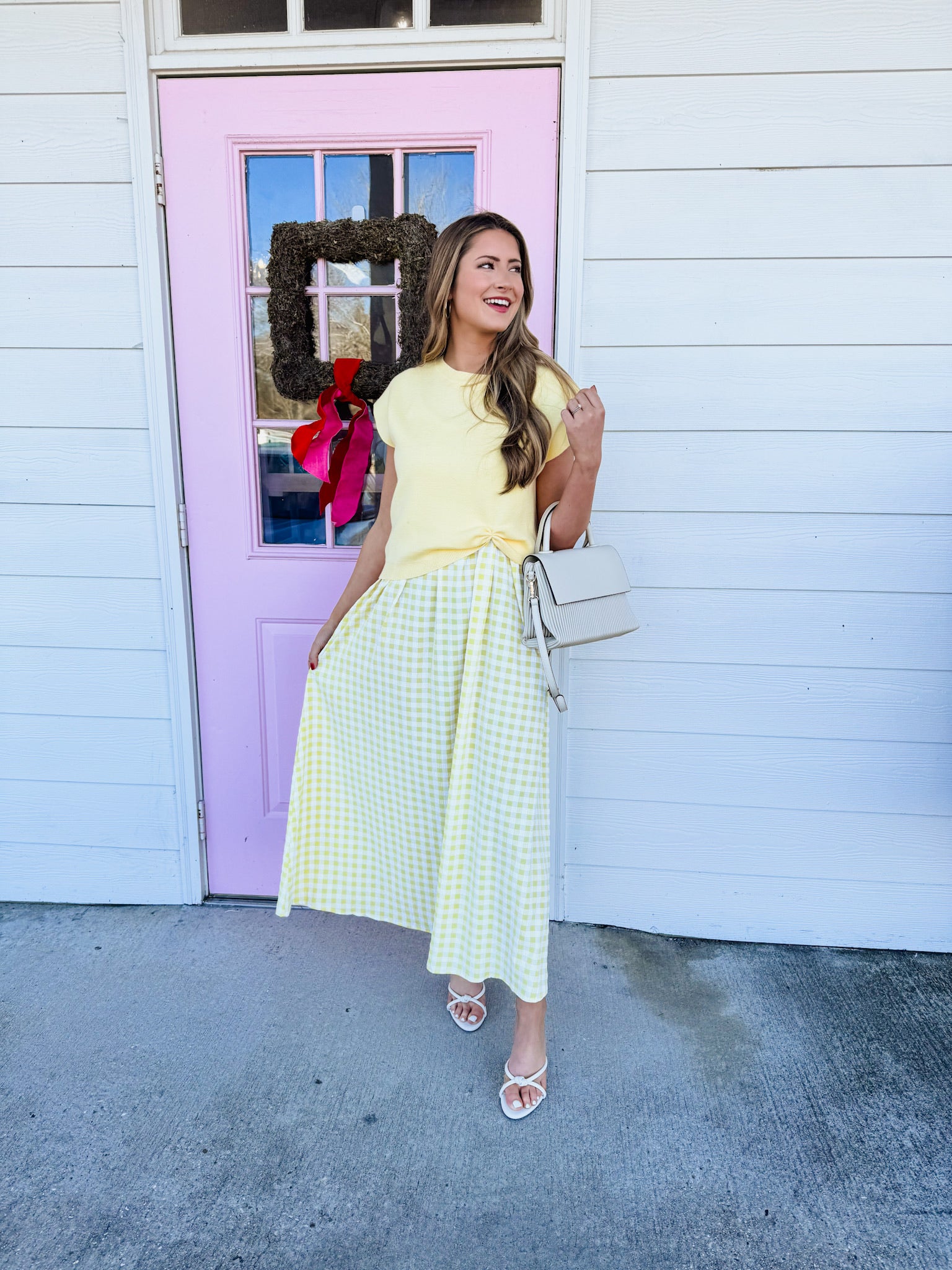 Light Of Mine Layered Gingham Midi Dress - Lemon