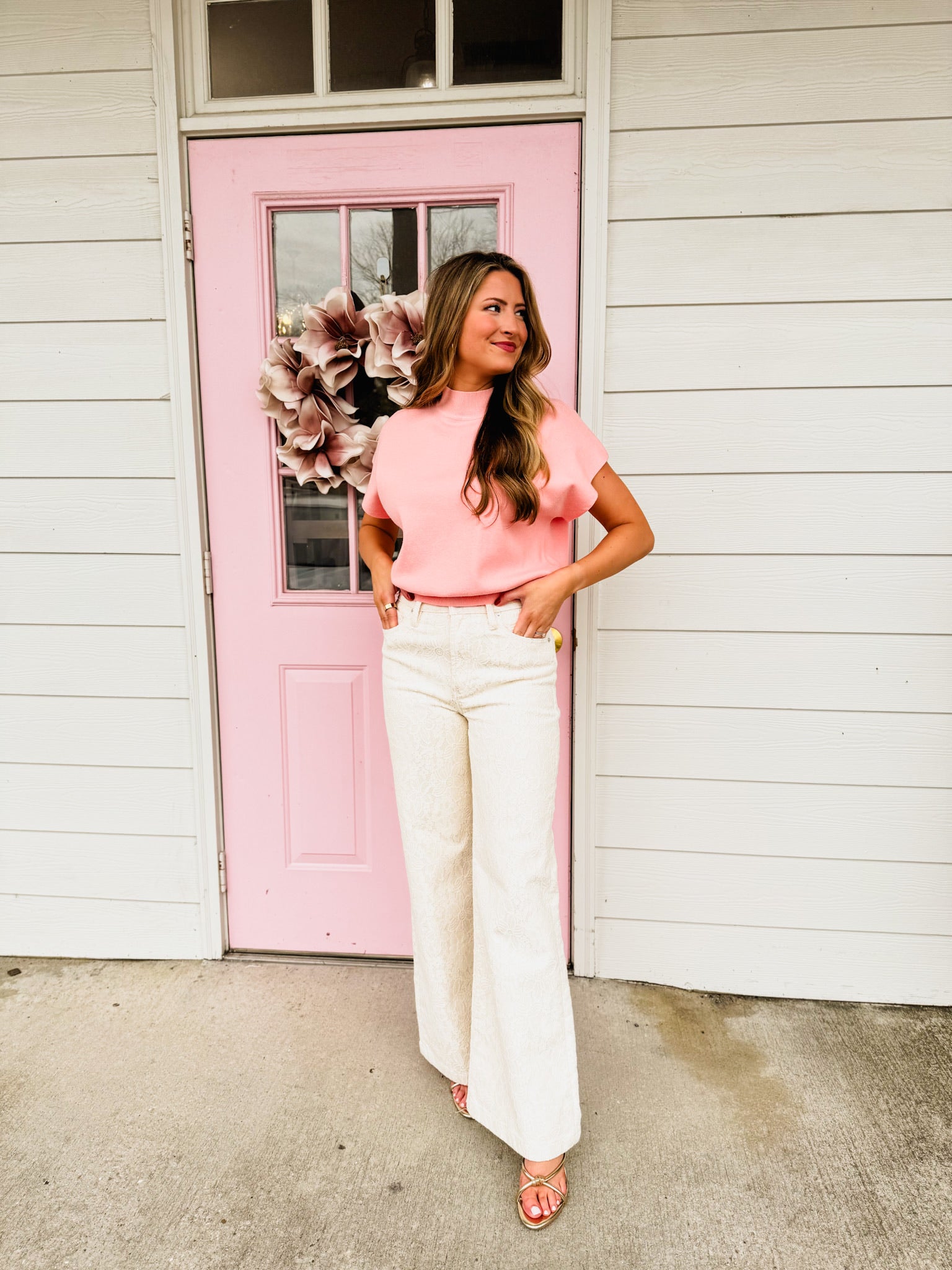 Elevate your everyday wardrobe with this essential mock neck short sleeve top in a gorgeous apricot hue. The classic mock neck adds a touch of sophistication while the breathable short sleeves keep you comfortable all day long. Perfect for layering or wearing solo, this versatile piece transitions seamlessly from casual outings to relaxed office vibes. Whether you're pairing it with jeans, skirts, or trousers, this wardrobe staple delivers effortless style that works harder than you do. A must-have addition that proves great basics never go out of style.
