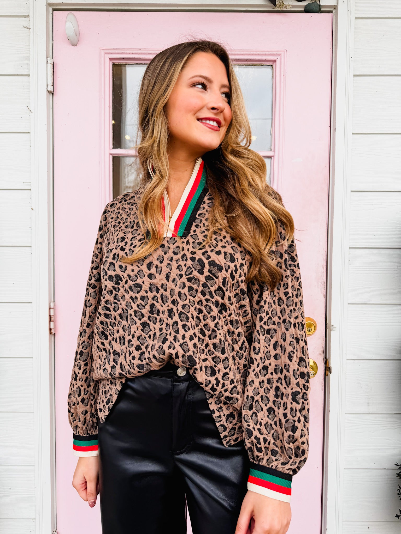 Make a bold statement with this textured leopard zip-up top in rich brown tones. The playful animal print brings instant edge to your wardrobe, while the convenient zip-up design lets you layer it effortlessly or wear it solo. Perfect for those days when you want to channel your inner fashionista and show the world you're ready to make power moves. Versatile enough for casual outings or dressed-up occasions, this piece is your new go-to for adding personality to any outfit.
