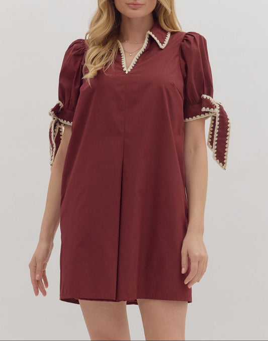 Tied With A Bow Puff Sleeve Dress - Garnet