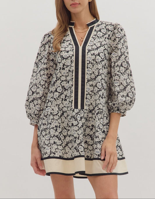 Home Grown Floral 3/4 Sleeve Dress - Black