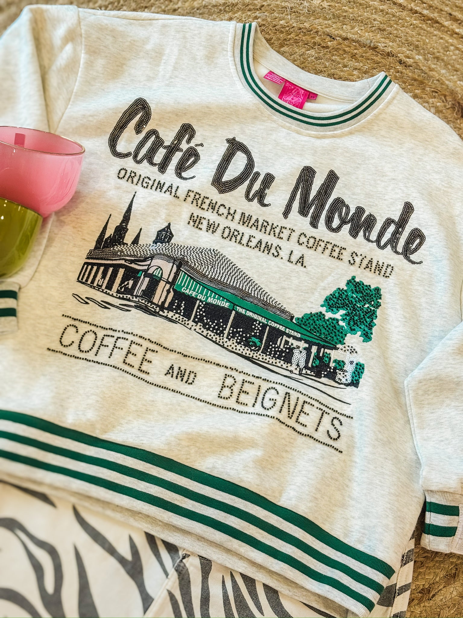 Queen Of Sparkles Licensed Grey Sport Stripe "Cafe Du Monde" Sweatshirt