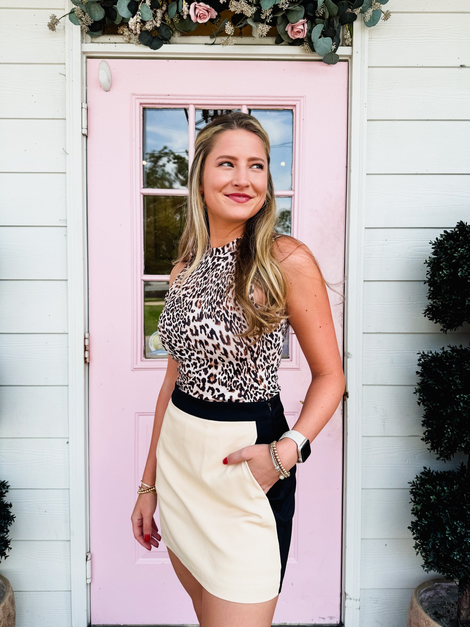 Elevate your look with the Reverie Leopard Mockneck Tank Top in Brown Multi. This playful piece combines a chic mockneck with a bold leopard print, adding a wild twist to your wardrobe. Perfect for layering or wearing solo, it offers a fun, confident vibe that’s sure to turn heads wherever you go. Embrace your daring side with this stylish, versatile tank top.