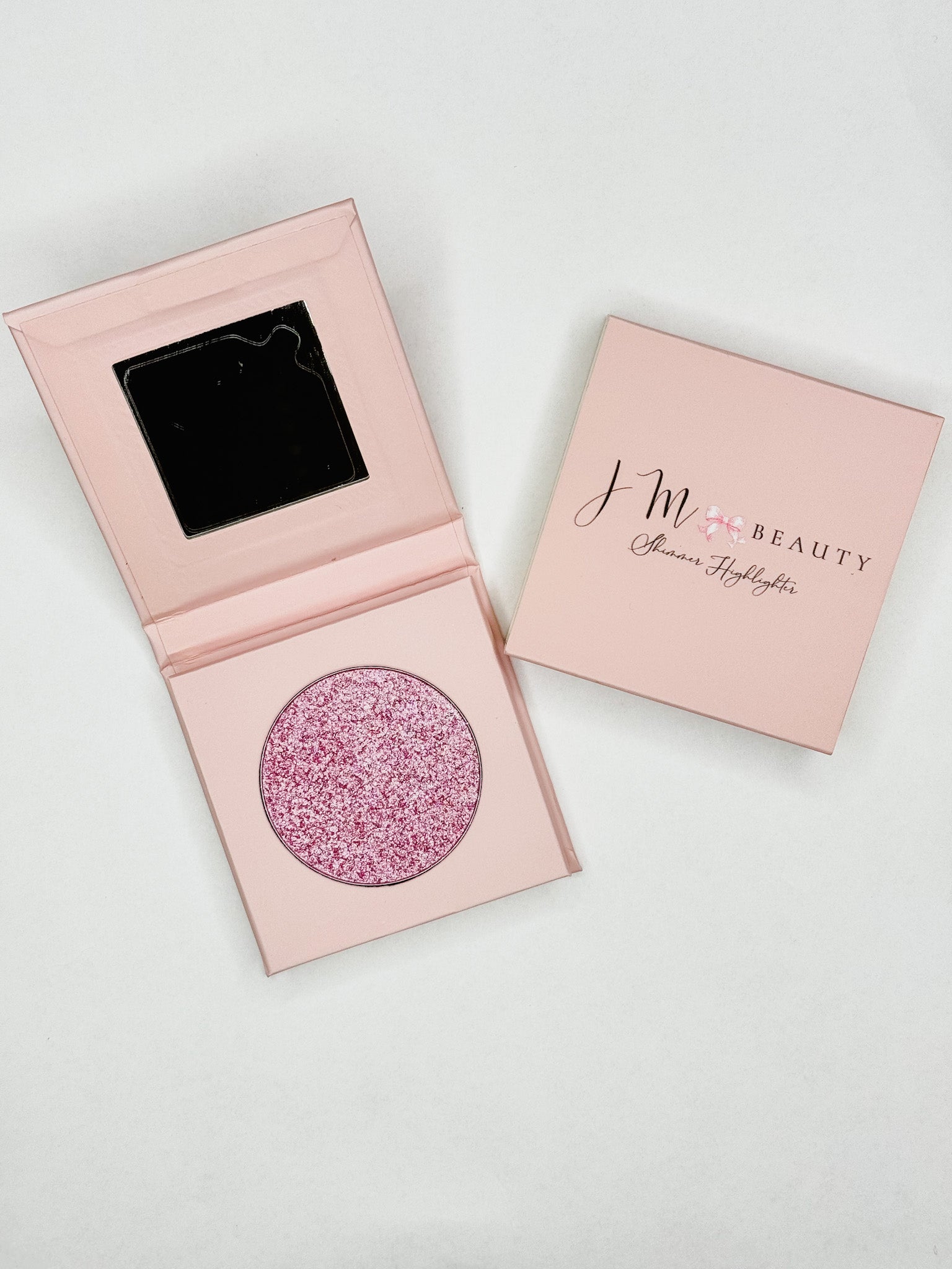 JM Beauty's Shimmer Highlighter powder provides a buildable, beautiful look. This lightweight, skin-breathable formula is easy to blend and instantly melts into the skin for an all day, multidimensional glow finish. Our Shimmer Highlighter is a luxurious powder that adds highlights to the face and body. Perfect for contouring your face and complements a wide variety of skin tones, currently available in 3 colors. Apply to face or body with a brush for a soft, iridescent highlight for any occasion. Square magnetic compact with mirror.
