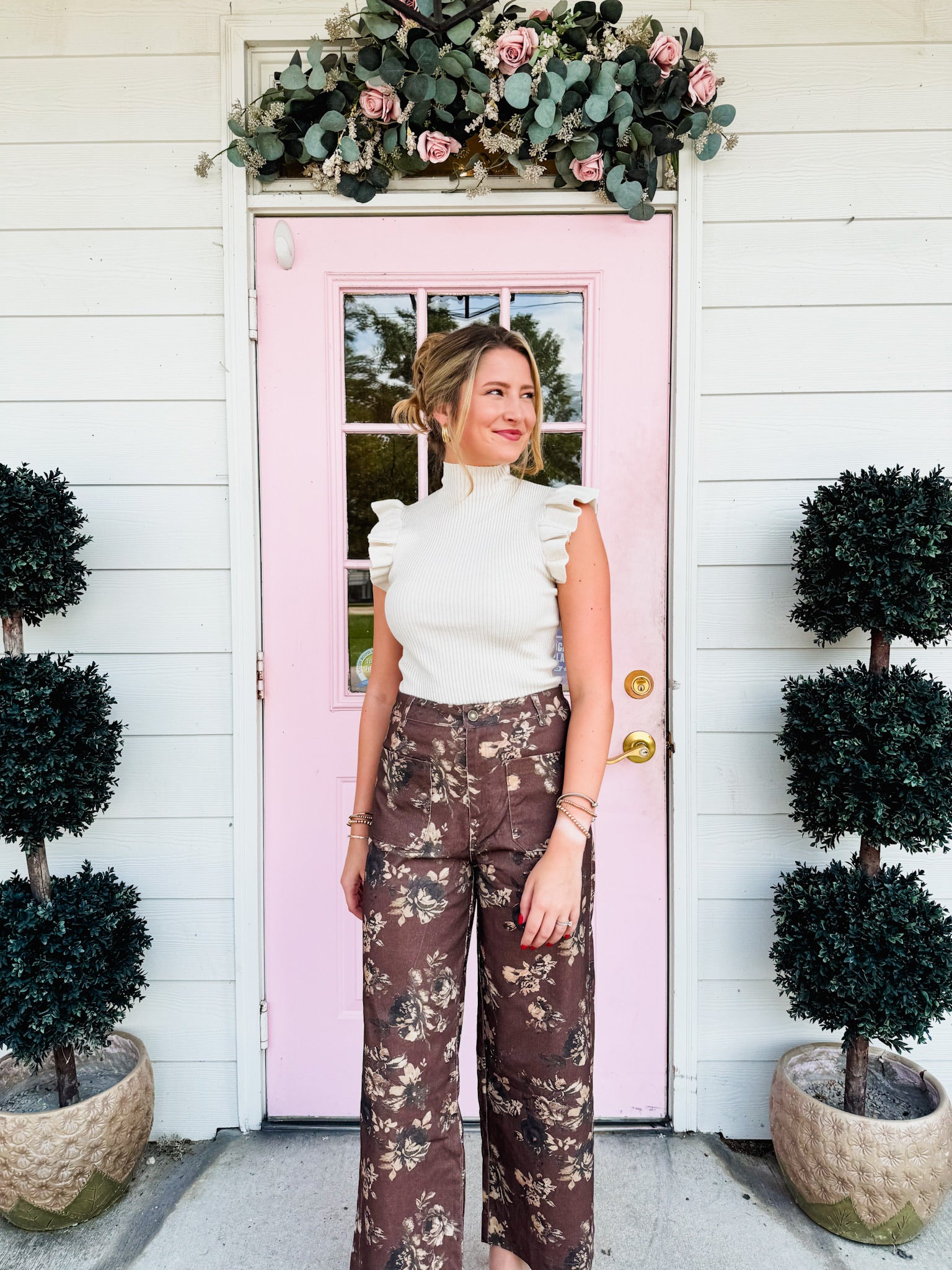Tiffany Mockneck Ruffle Tank Sweater - Cream