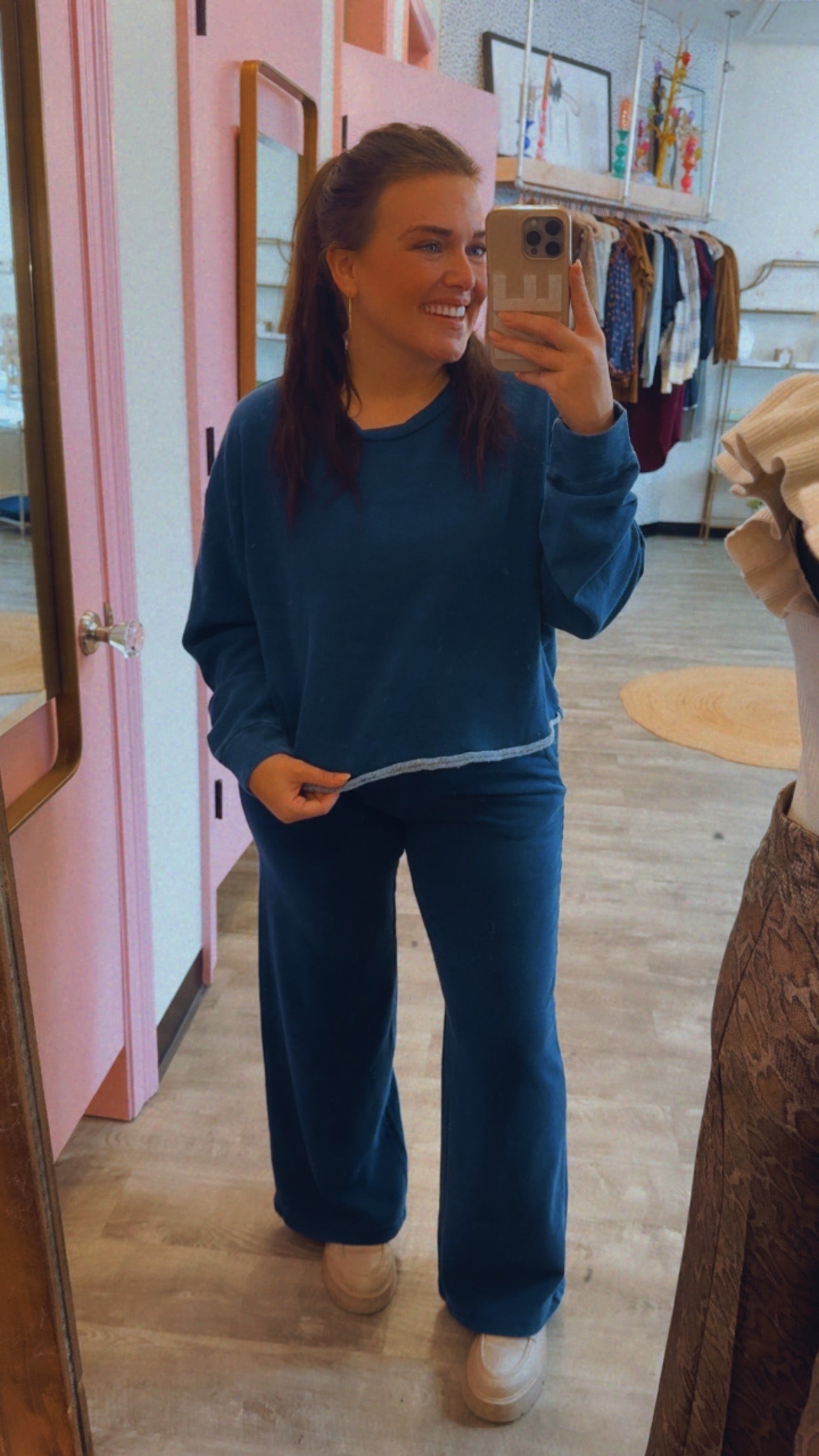 Your off-duty uniform just got a chic upgrade. Crafted from knit denim French terry with a lived-in mineral wash, this relaxed crew has that just-right slouch and an edge of raw hem detailing—perfect for layering over leggings or pairing with matching bottoms.