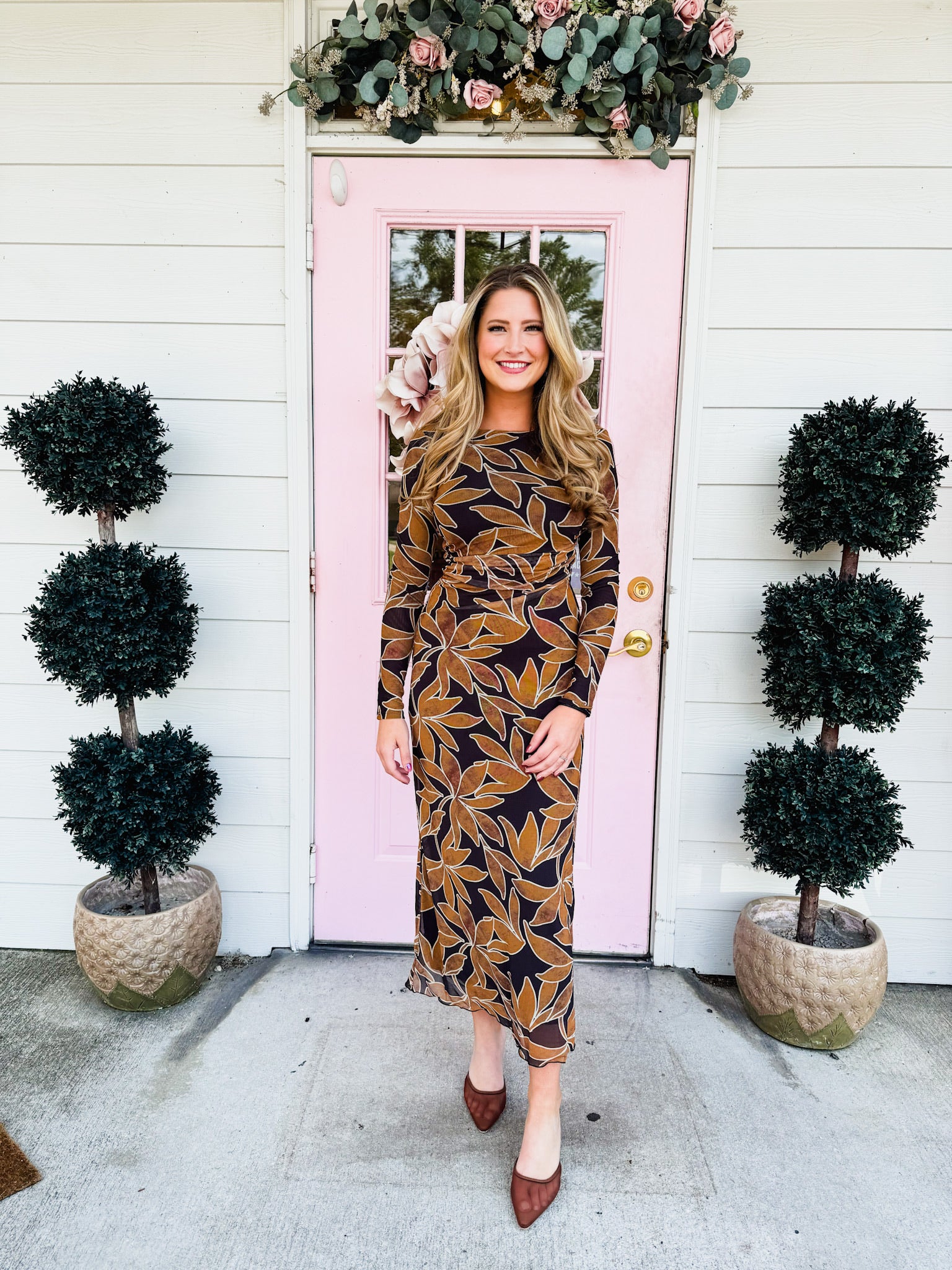 Bold and beautiful, this mesh maxi brings just the right amount of drama. Shirring at the waist, a scoop-back detail, and soft lining underneath keep it comfy while giving standout appeal.